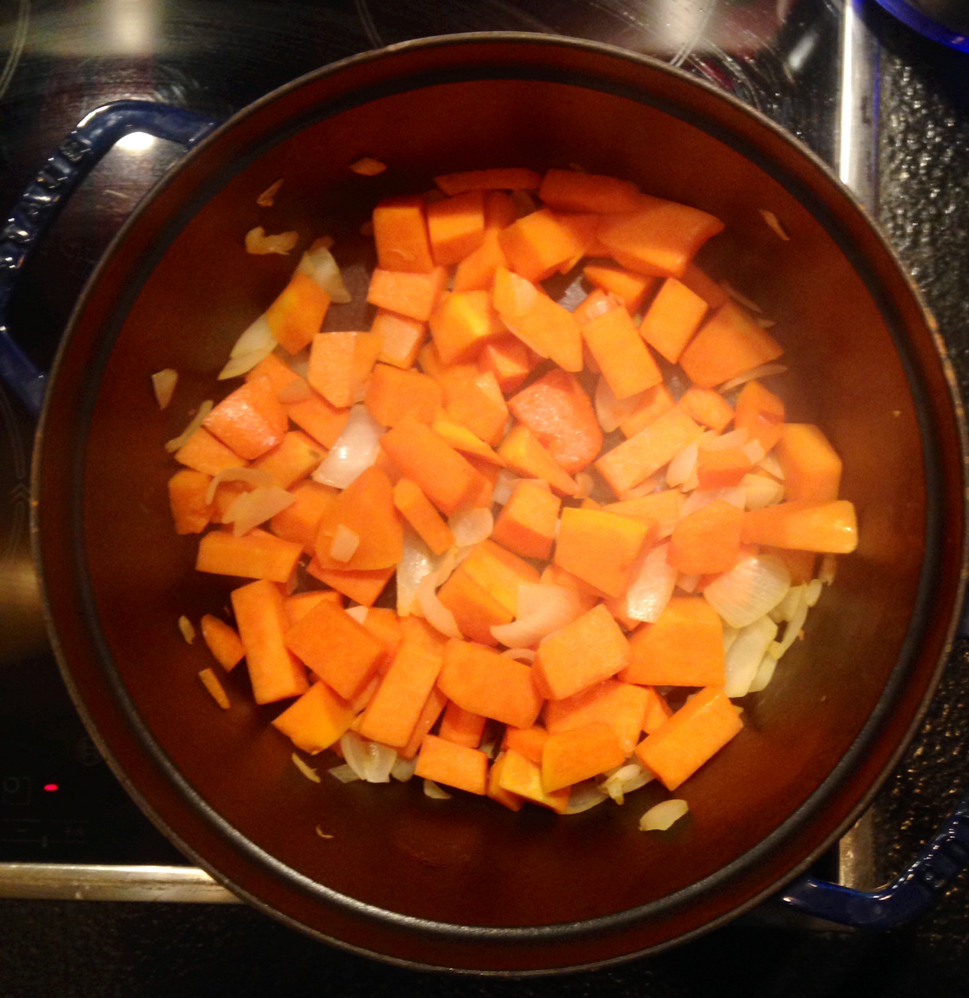 - Faire revenir 10 minutes puis ajouter le potiron et faire revenir 20 minutes