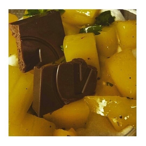 - Déposer le carré de chocolat noir coupé en 2 à 4 morceaux